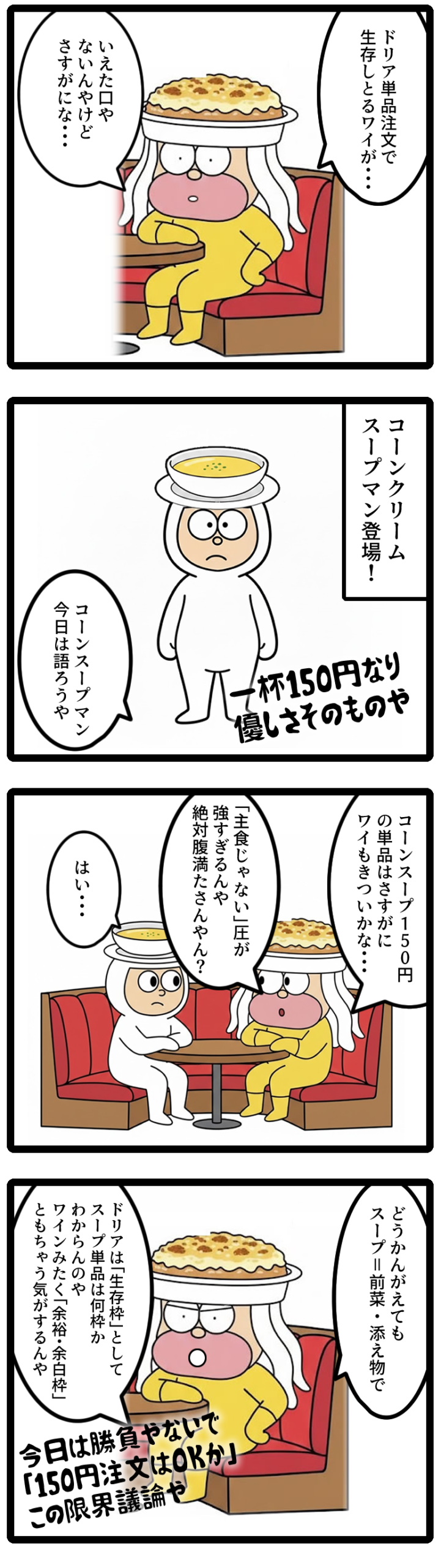 漫画やと「150円注文はありか?限界議論」について詰め切れてないから文章記事で補足するわ。
